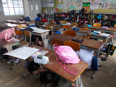 いつ訓練になるか分からないから,少し怖くて教室にいた人もいました。