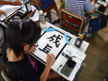 毛筆書写では,昨日書いた「成長」の清書に取り組みました。
