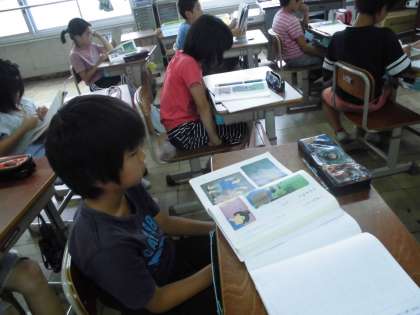 まず、話を聞く前に教科書の挿絵や題名から、どんな話か予想しました。