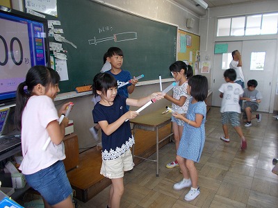 どうしたら玉が遠くまで飛ぶか,子どもたちは実験しながら一生懸命に考えていました。