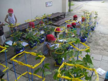 ますます,毎日の水やりにも力が入る,1年生のみんなです。