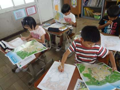 地図記号を書き込んだりして