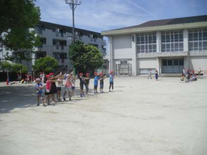 だれが遠くまで水を飛ばせるか競争も行いました。