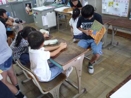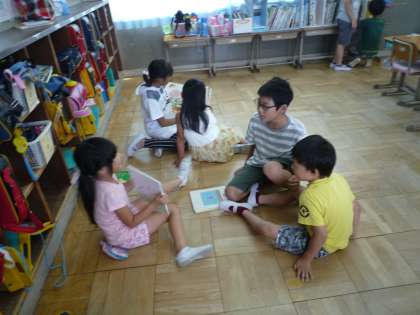 教室で読む練習をしていました。