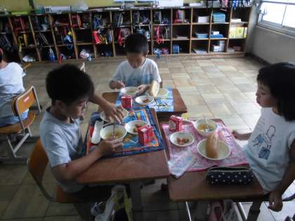 写真は,最近はやっている歌らしい「コッペパン」が出た給食と,