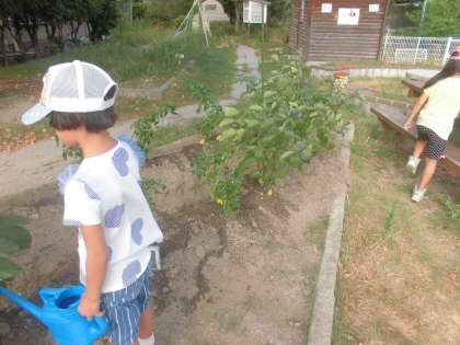 夏休み中も,畑の水やりや草抜きをして野菜の生長を見守りました。今年は命にかかわるほどの厳しい暑さでした… 台風も… 野菜が無事に育つのか心配でした。