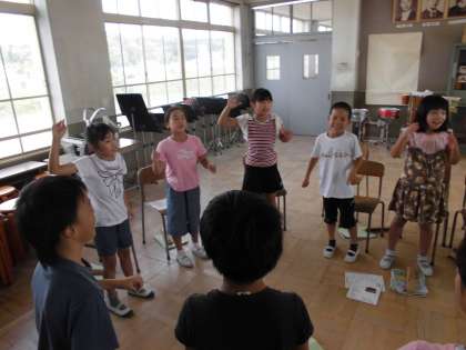 音楽の授業で「とどけようこのゆめを」という曲を歌っています。