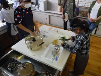 包丁を使う際,慣れない手つきで少し怖い部分もありましたが,全員ケガなく,作り上げることができました。