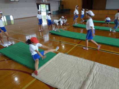 マット運動の授業です。