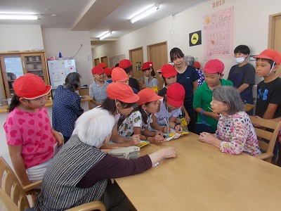 はじめは緊張気味だった子どもたちですが,少し慣れてくると入所者の方とお話も弾んで楽しい時間を過ごすことができました!