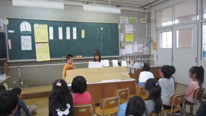 発表会では,見ている友だちも興味をもって聞いていました。