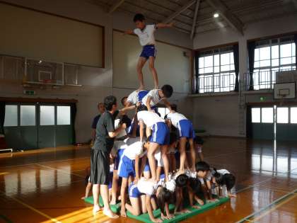 そんな中,組体操を通して練習してみました。