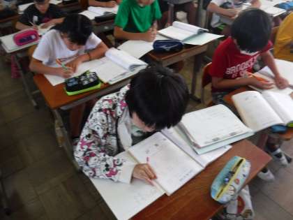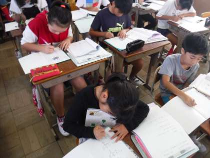 「約分」「通分」など,新しく習った言葉をしっかり頭に入れながら,問題に挑戦しました。