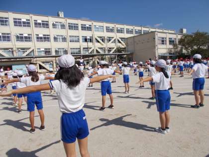 運動会の1回目の全校練習,今日は開会式・閉会式の練習と応援合戦の練習をしました。