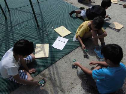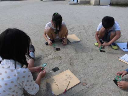 理科の授業で太陽の光をあつめたときの明るさとあたたかさを調べました。