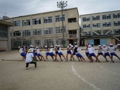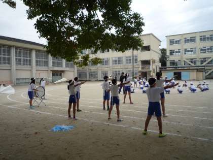 今日の全校練習では,玉入れや綱引きの動きの