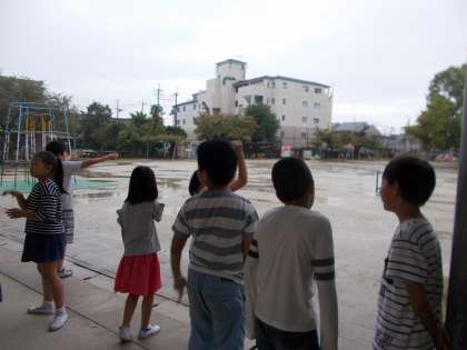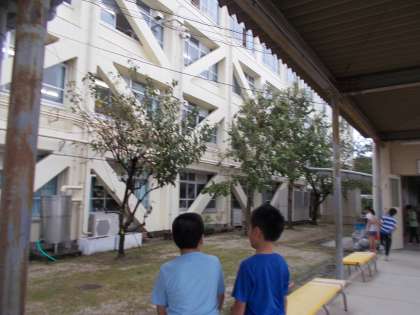 あいにくの雨でしたが,渡り廊下から春や夏から変わったものを見つけました。
