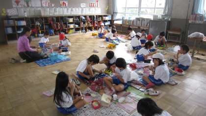 午前の部が終わる前から,「お弁当はいつ〜!?」と楽しみにしていた1年生。