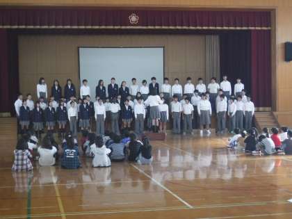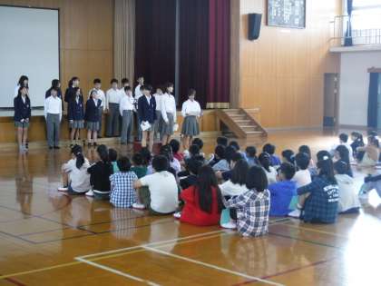 中学校1年生の生徒が,4・5年生のために合唱を披露してくださり,一生懸命な中学生の姿に4.5年生も聴き入っているようでした。