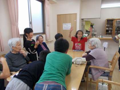 ホームの方たちが「かわいい,かわいい」とかわいがってくれるので,少し照れながらも楽しく話ができました!