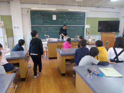 ペットボトルに栓をして,熱いお湯に入れたら,すごい音がして栓が飛んだのも見せてもらいました。