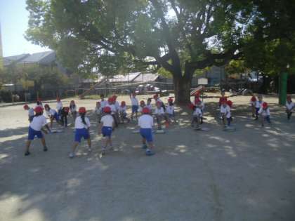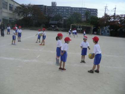 友だちと上手にパスを回したり,転がしたりして楽しみました。