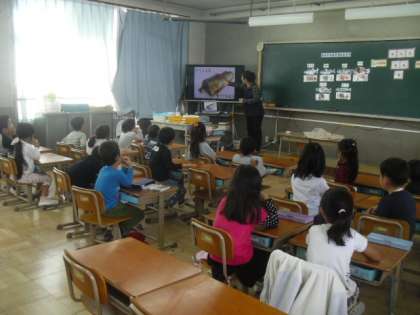 1組では,先週,栄養教諭の阿野先生と一緒に「魚」について学習しました。
