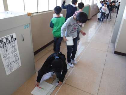 今日の算数は,自分のおよその歩幅を平均で求めました。