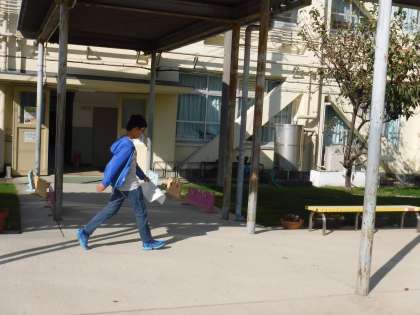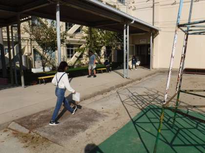 その歩幅を使って,学校のあらゆる場所の長さを測り,子どもたちは電卓片手に様々な場所を調べていました。