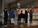 おはようございます。山の家2日めが始まりました。昨夜は、少し遅くまでお友達と話していた子もいますが、みんな元気です。今朝は、山の家に一緒に宿泊している学校どうしが集まって、学校紹介をしました。学校紹介を担当する代表の子どもたちも、本当に大きな声で立派に学校紹介ができました。そのあとは、食堂での初めての食事です。バイキングなので、みんなは大喜びでした。