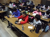今日のフライングディスクゴルフの様子です。なかなかゴールに入りません。悪戦苦闘している班もありました。その後は、4日間のたくさんの思い出をおうちの方に手紙で知らせようということで、はがきを書きました。おうちの方の顔を思い浮かべて真剣にかいていました。今日の帰りにポストに投函しますので、数日後楽しみにお待ちください。この後昼食を食べて退所式の後、いよいよ向島まで帰ります。