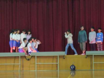 自分たちだけで進めてみました 公開日 2018/11/14 更新日 2018/11/14 6年生の部屋 学習発表会もいよいよ来週となりました。 今週は,声が小さければやり直す。 という約束で練習を始めました。 自信がついてきたのか,ずいぶんと大きな声で セリフを言うことができるようになりました。 もちろん,照明・音響も自分たちで全部行います。 さすが6年生。 タイミングバッチリでした!