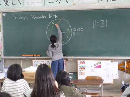 時間の学習をしよう 公開日 2018/11/16 更新日 2018/11/16 6年生の部屋 外国語の学習で時間を勉強しました。 英語で話された時間を聞き取り 自分で針を描くのですが・・・ 「短い針は時間?分?どっち?」 と,そこからの混乱が起きていました・・・。 でも,なんとか無事にその問題は乗り越えることができ しっかりと時間を聞き取って 時間を描くことができました。 友達同士で問題を出し合うことにも挑戦しました。