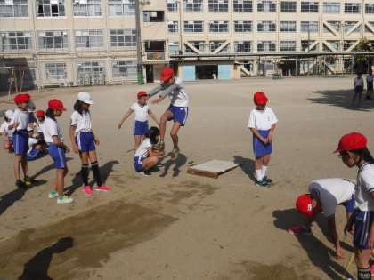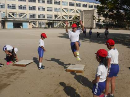 今日から体育の学習で「走りはばとび」に入っています。