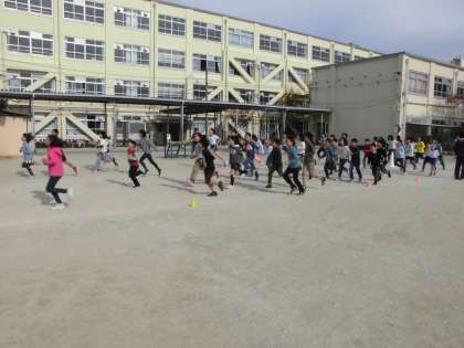 今日から中間休みの5分間走が始まりました。