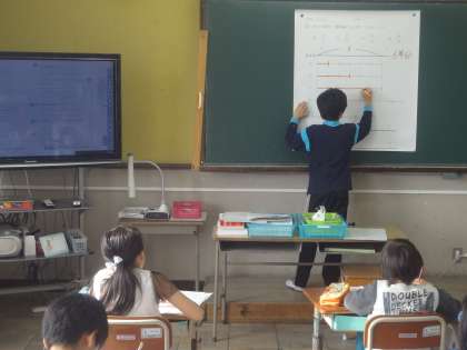 数直線を「何等分」としっかりよんで,分母を確かめました。