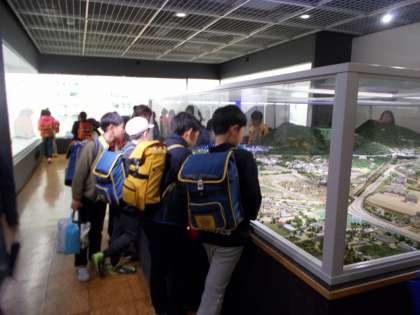 インクラインの仕組みや,琵琶湖疏水がどこを通っているか分かるようになっているジオラマがあるので,興味深そうに見学していました!