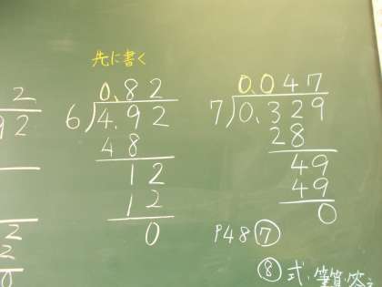 一の位に商が立たない時は,「0.…」から書き始めます。