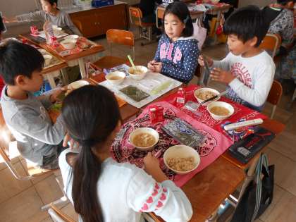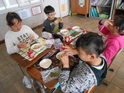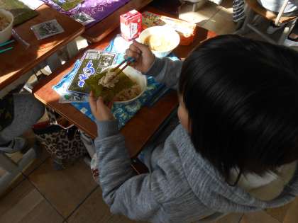 炊き込みごはん 公開日 2018/12/12 更新日 2018/12/12 3年生の部屋 今日の給食は「ごもくたきこみごはん」でした。 のりがついていたので, のりに巻いておいしくいただきました。 おなかいっぱいになりましたね!
