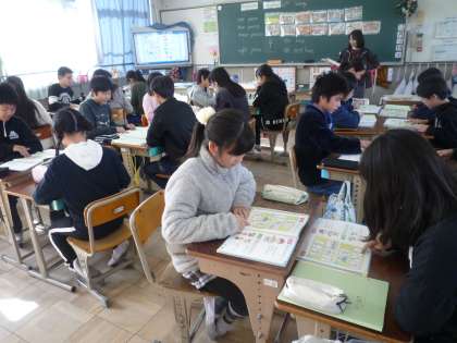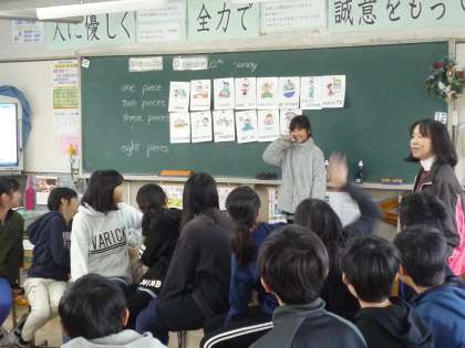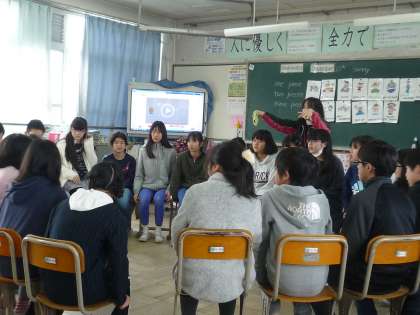 外国語の学習をしよう 公開日 2018/12/12 更新日 2018/12/12 6年生の部屋 12日(水)に,中学校の中原先生と一緒に 外国語の学習をしました。 日常生活のことの英語での言い方を教えていただき ハンカチ渡しーゲームで,曲が止まっているときに ハンカチが回ってきた人は ジェスチャーをします。 その動きを見て,何のことをしているのかを 英語で答えるゲームや 教科書はやおしゲームなど とても楽しい内容で学習をすることができました。