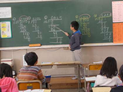 算数「小数÷整数」では,割り切れるまで「0」をおろして計算する学習をしました。