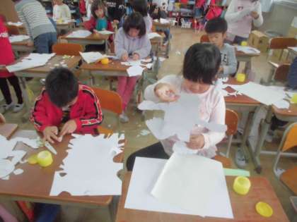 図画工作科「たのしく うつして」の学習では,おにづくりにチャレンジしています。