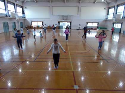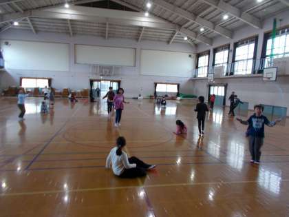 みんな息を切らせながら,がんばって跳んでいました。