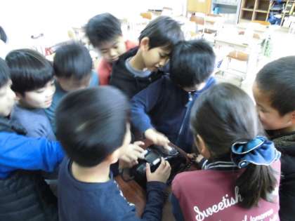 今使っている炊飯器は,昔はまきに火をおこしてかまどでおかまを使っていたということを学習したり,昔の台所や,洗濯板や二層式洗濯機,手回し脱水でする洗濯の様子を映像を通して学びました。