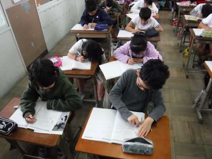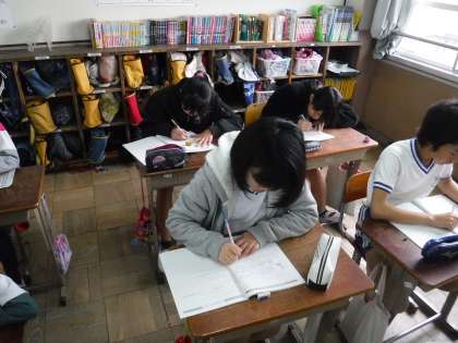 今日の総合は,スチューデントシティ学習で買い物をする際に書く「収支記録帳」の書き方を学びました。