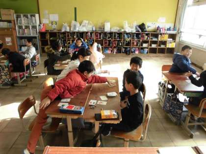 外国語活動で,学んだ言葉を使いながらかるたをしました。