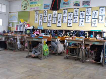 シェイクアウト訓練 公開日 2019/01/16 更新日 2019/01/16 4年生の部屋 今回はいつ放送が鳴るか分からない訓練でした。 用心深い人が多い4年生は「そんなん教えてほしいわ〜。」とこぼしていましたが,放送が鳴ったらすばやく身を守る行動をとることができていました。 見ている方も安心できる避難の仕方だったと思います!