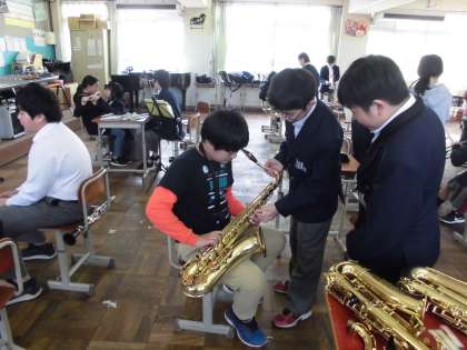 放送部や吹奏楽部の先輩もとても優しかったです。放送部では,放送室の中で楽しく話をしたり,カードを使ってゲームもしました。吹奏楽部では,いろいろな楽器を実際に演奏させて頂いたり,指揮者の体験もさせていただきました。