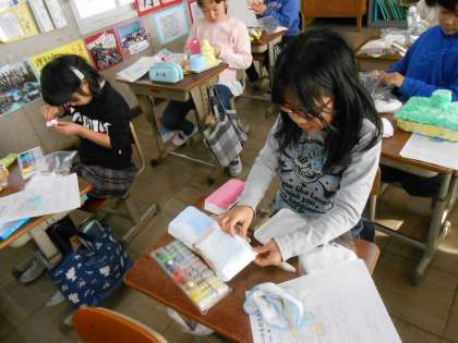 出来上がったオリジナルの小物入れは,図工展で展示します。2月の参観日をお楽しみに!