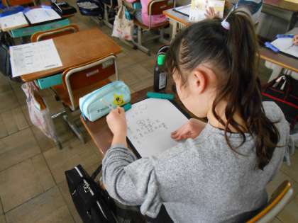ということで,「4年生になるまでにがんばるぞ!」という思いを書きました。挿し絵もそえて,なかなかよいカードに仕上がりました。
